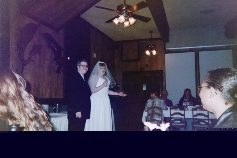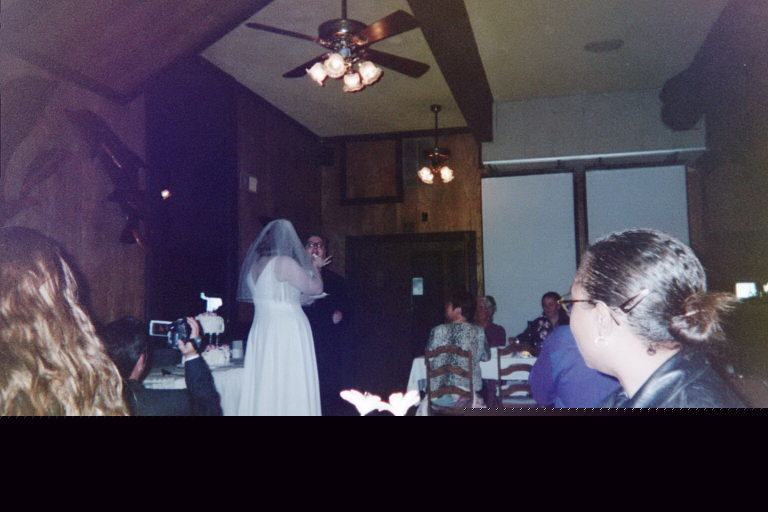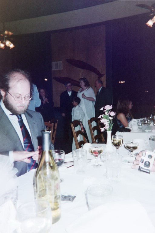 The father of the groom and the mother of the best man have a little conference. The tiki tower, fashioned out of place cards. Clearly, I should have put toys on the tables. Oh wait, I guess I did.