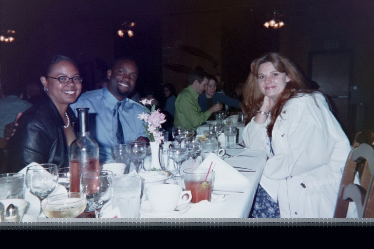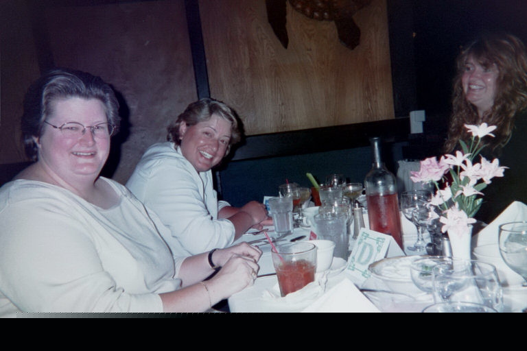 Charissa and Curtis (a lovely pair), and April, smile for the other end of the table. The tables turn (or at least the camera does), and we get a terrific shot of Kathy, Rita, and Stevie, the babes of bowling.